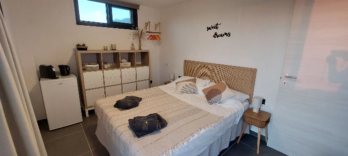 Nos deux chambres d’hôtes, chacune dotée d’une entrée indépendante, vous offrent un confort sur mesure : lit double ou twin, salle de douche privative avec produits d’accueil, linge complet et draps de piscine, air conditionné, espace café/thé, sèche-cheveux et fer à repasser.