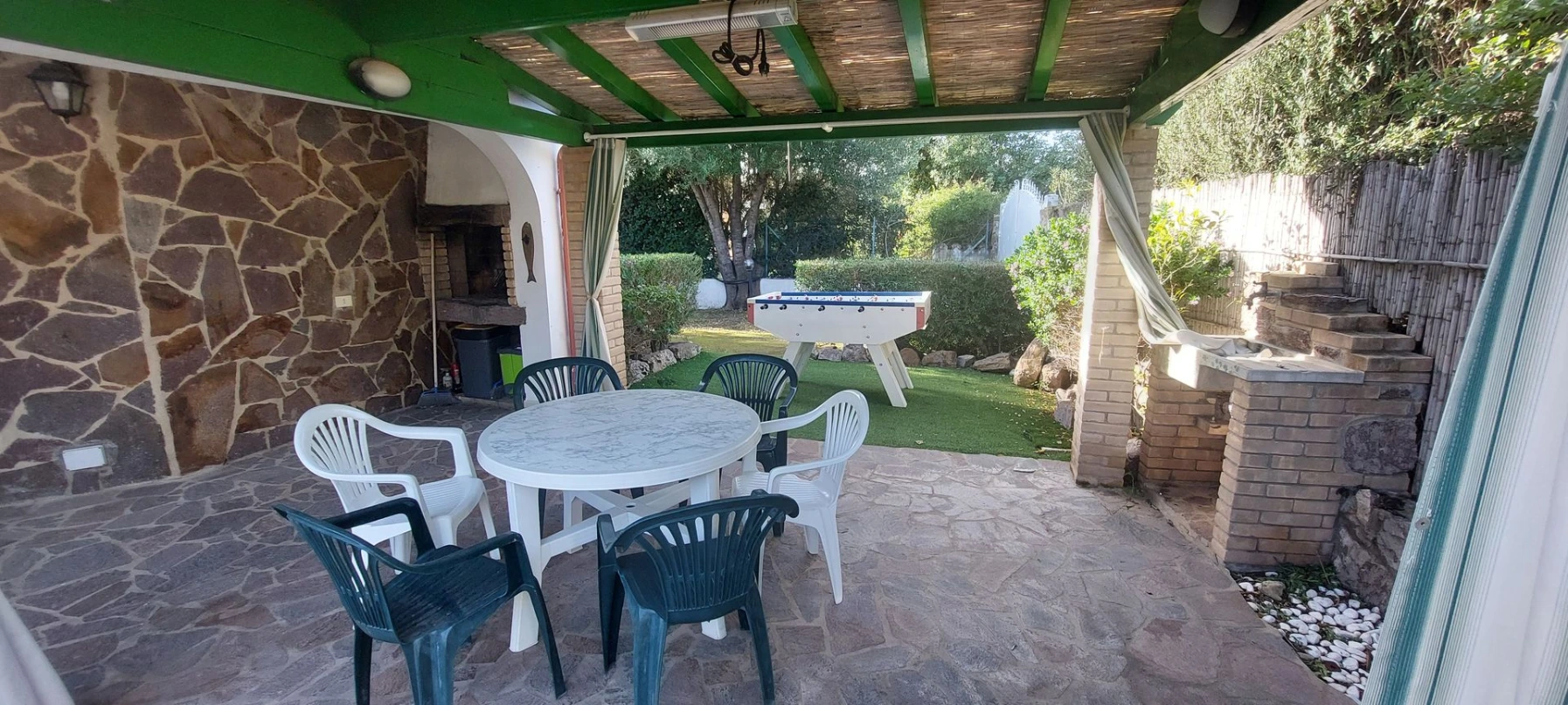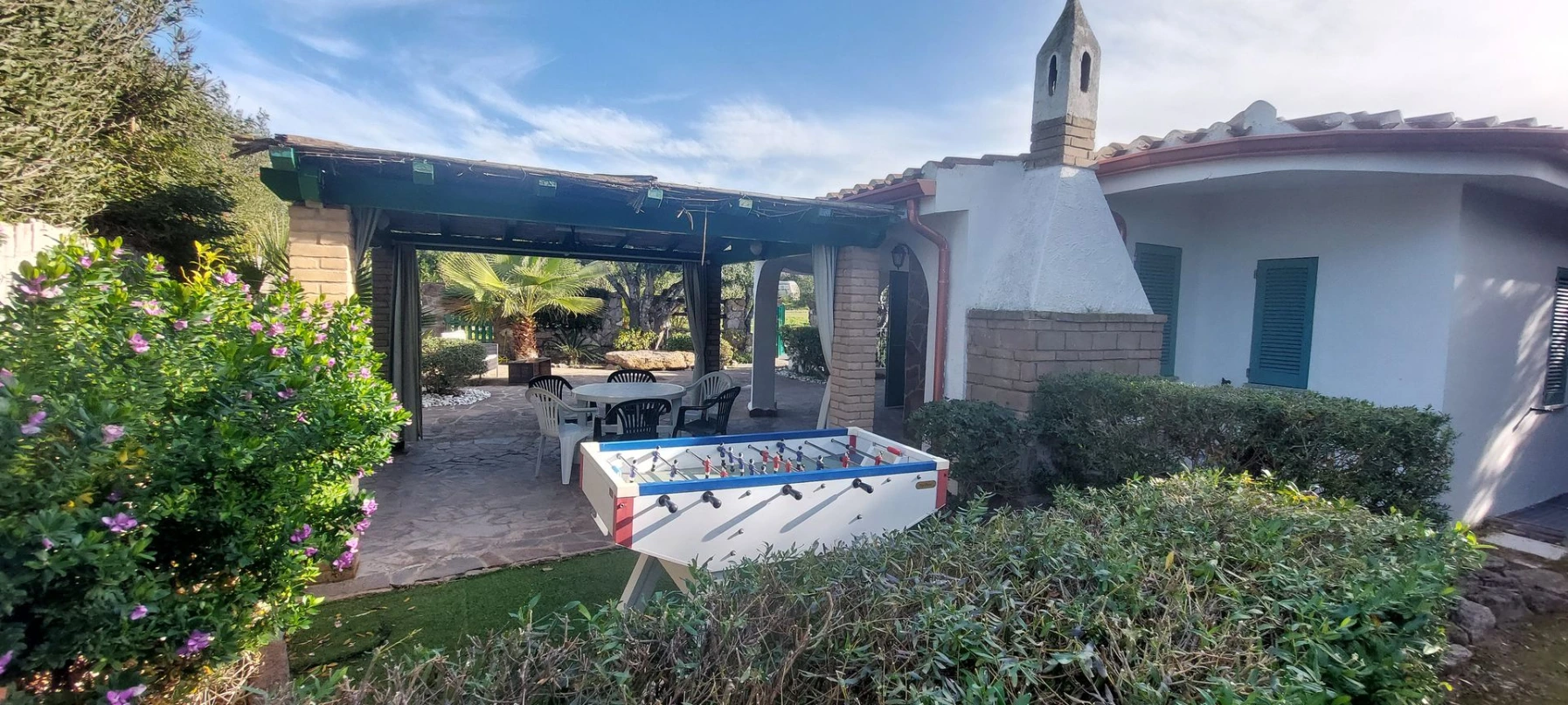 À seulement 5 minutes à pied de la magnifique plage “Le Saline”, cette villa offre un cadre chaleureux et convivial, idéal pour des vacances en famille ou entre amis. Les extérieurs sont particulièrement soignés : une grande terrasse couverte avec barbecue, plusieurs espaces détente aménagés dans un jardin exposé plein sud, garantissant soleil toute la journée, et même un baby-foot pour des moments ludiques en plein air.